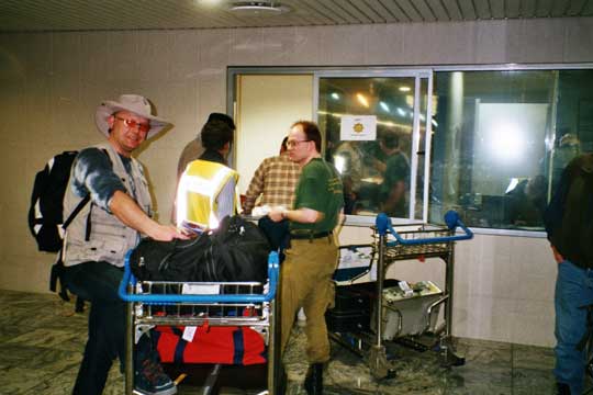”våpeninnsjekkingen” i Johannesburg, og skal ”klarere” oss inn som bevæpnede